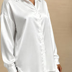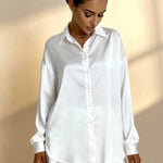 Het Passie pyjama shirt viert de puurheid van wit met een onweerstaanbare romantische touch. Het oversized shirt heeft een klassieke kraag en ballonmouwen, sluit met een nette knoopsluiting en biedt een losse en comfortabele silhouet. De gerimpelde shorts voegen een vrouwelijke en speelse dimensie toe aan het geheel. Gemaakt van zachte satijn die de huid streelt, combineert deze witte lingerie pyjama tijdloze verfijning met absoluut comfort. Perfect voor zoete nachten of charmante, ontspannen ochtenden.